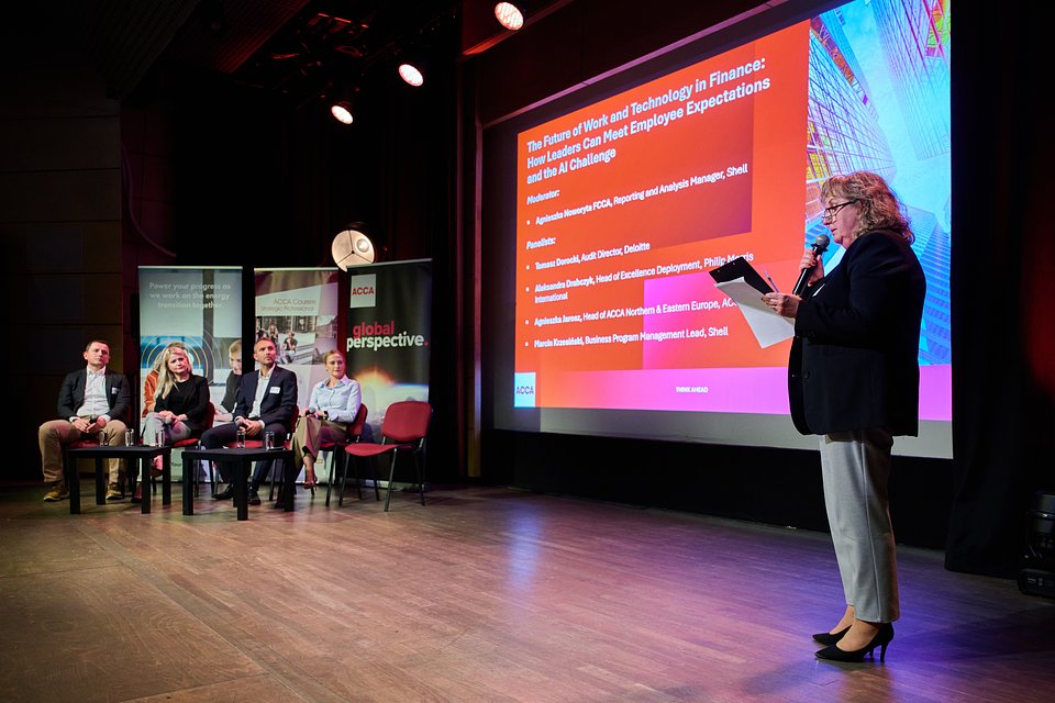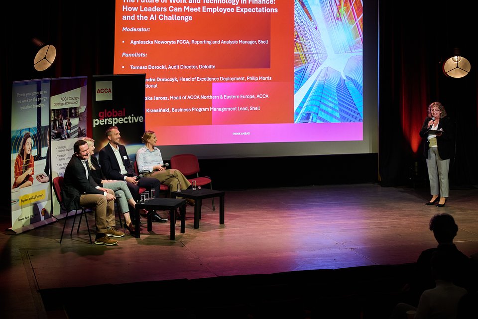Na bazie tych wyników odbyła się dyskusja panelowa pt. The Future of Work and Technology in Finance: How Leaders Can Meet Employee Expectations and the AI Challenge. Moderatorką była Agnieszka Noworyta FCCA (Shell), a w gronie panelistów znaleźli się: