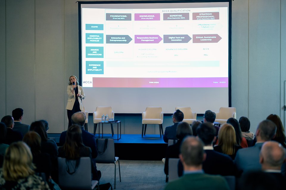 Następnie głos zabrała Patrycja Zalewska, Business Development Manager w ACCA Polska, która opowiedziała o zmianach w kwalifikacji ACCA, które zaczną obowiązywać od 2027 roku. Wyjaśniła, dlaczego kwalifikacja jest aktualizowana właśnie teraz oraz jak ACCA odpowiada na potrzeby pracodawców i postępującą transformację technologiczną.