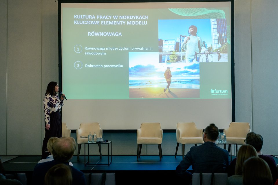 Ogromne zainteresowanie wzbudziła również prezentacja Magdaleny Zielińskiej FCCA z Fortum, która zabrała uczestników do świata skandynawskich wartości pracy. Opowiadała o kulturze opartej na zaufaniu, autonomii i równowadze, opartej na filozofiach lagom i hygge.