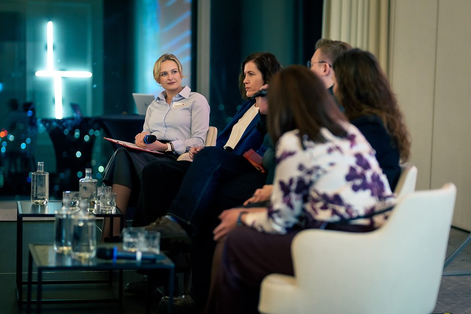 Kulminacyjnym punktem wieczoru była dyskusja panelowa „Kultura, kompetencje i technologia – jak przygotować organizacje na przyszłość pracy”, moderowana przez Agnieszkę Jarosz. W panelu wzięli udział: